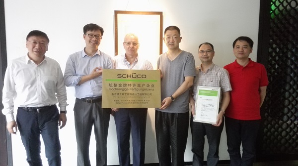 6月29日,旭格大中华区总裁Guenter Strauss、旭格中国销售总监等高层团队访杭州,建工环艺董事长孔震先生、总经理张君庆先生等领导在西子湖畔热情的接待了旭格团队。做为旭格目前唯一的金牌生产企业,双方进行了深入的会谈,对双方紧密的战略合作关系深入的交换了意见,对旭格未来在杭州及浙江地区的长远发展战略进行了探讨和规划。同时举行了旭格金牌证书的授牌仪式,旭格Guenter Strauss先生代表旭格授予建工环艺“旭格金牌特许生产企业”。这是旭格三度授予我司此荣誉,这不仅代表双方16年的精诚合作,也表示旭格公司对我司的旭格市场开发、产品品质、售后服务等方面的认可。