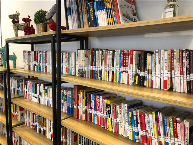 职工书屋位于办公大楼3楼,现有藏书1000余册,涉及政治、经济、历史、文学、养生、励志、管理等类型,还配有围棋、象棋等休闲游戏,希望成为广大员工“加油充电”的新平台。