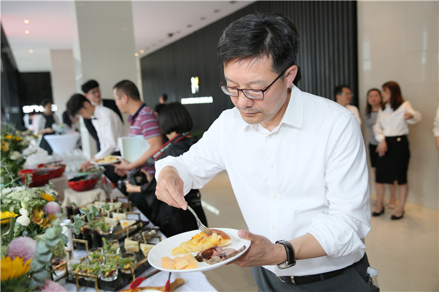 会后,来宾们到我们的展厅享用美食。在优美的小提琴声中,他们边畅饮,边交谈,活动也渐渐进入了尾声。