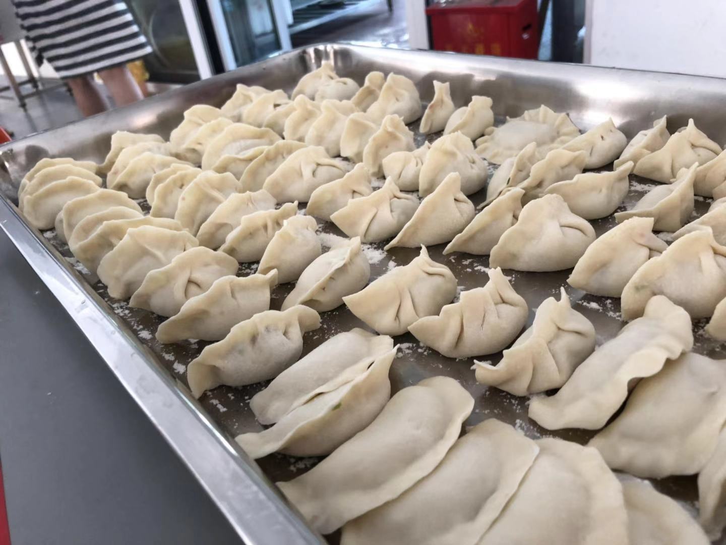 各部门小伙伴们齐心协力,和面的、擀皮的、包饺子的,个个忙得不亦乐乎。大家热情高涨,配合紧密,各个环节井然有序。人人都拿出“看家”的本领。其中不乏包饺子高手,用手用力捏一下,成了。也有不会的员工,现学现试,包好的饺子形态各异、花样百出。世界上没有两片相同的叶子,同样也没有两个相同的饺子。不信你来看看我们的饺子。