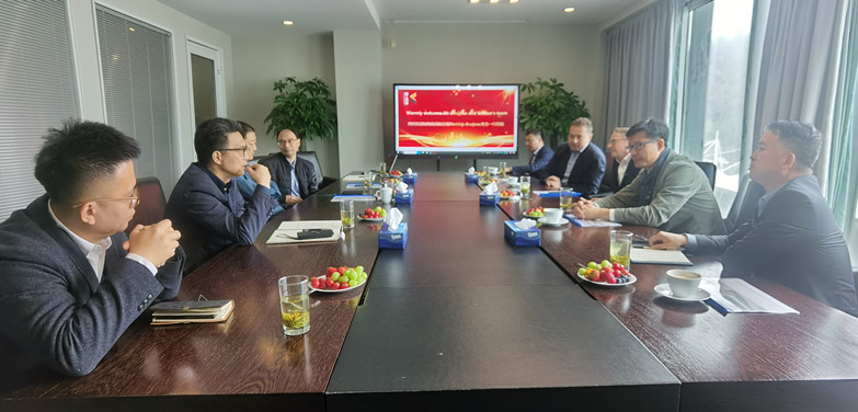 2023年3月21日,德国旭格国际集团副总裁Matthijs Bruijnse先生、德国旭格国际集团大中华区执行总裁Torsten Dietze先生、旭格中国副总经理李彤先生及旭格中国管理层莅临我司参观考察。我司董事长孔震先生、总经理张君庆先生、副总经理周健先生、副总经理吴方佐先生全程陪同参观,并与到访客人进行会议交流。