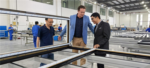 旭格一行在我司领导陪同下参观了旭格展厅、加工工厂以及喷涂线。在参观过程中,Antony先生仔细了解了生产设备使用情况、生产加工工艺、管理流程等,并对我司产品给予高度的评价和认可。